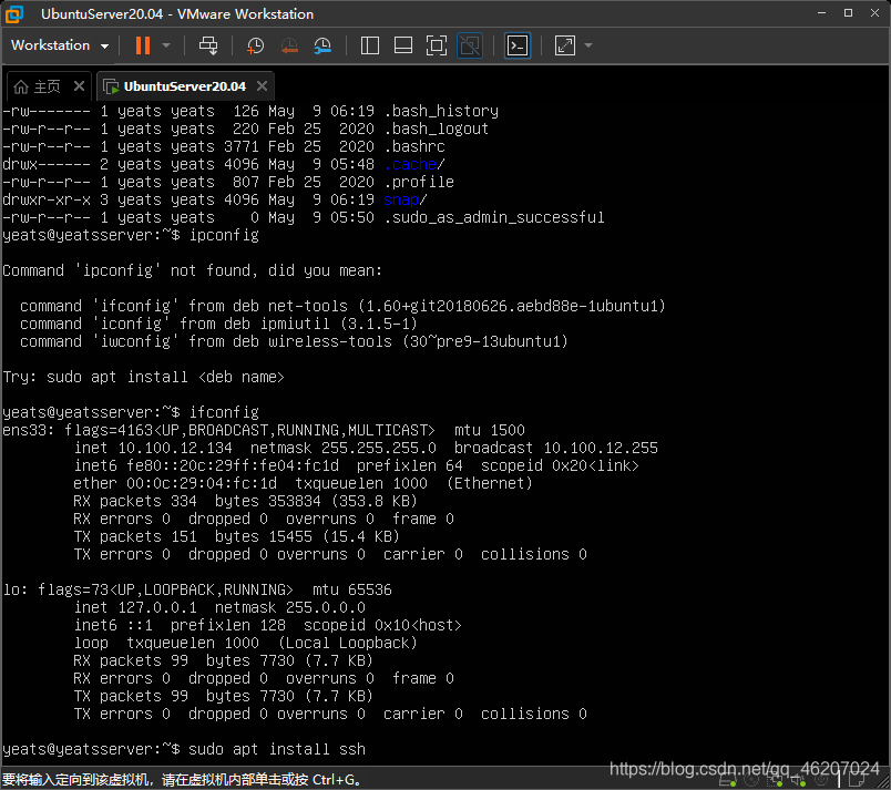 ifconfig,ens33中即可查看到地址