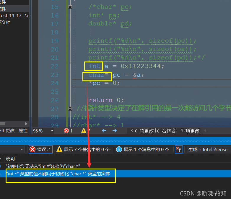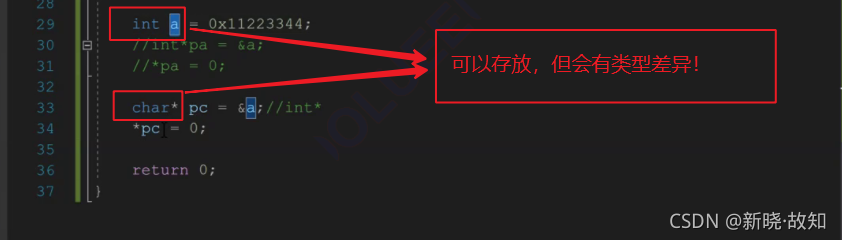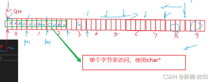 总结: 指针的类型决定了,对指针解引用的时候有多大的权限(能操作几个字节)。 比如: char* 的指针解引用就只能访问一个字节,而 int* 的指针的解引用就能访问四个字节。