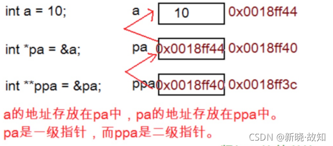 指针变量也是变量,是变量就有地址,那指针变量的地址存放在哪里? 这就是 二级指针 。