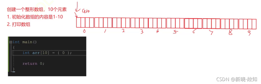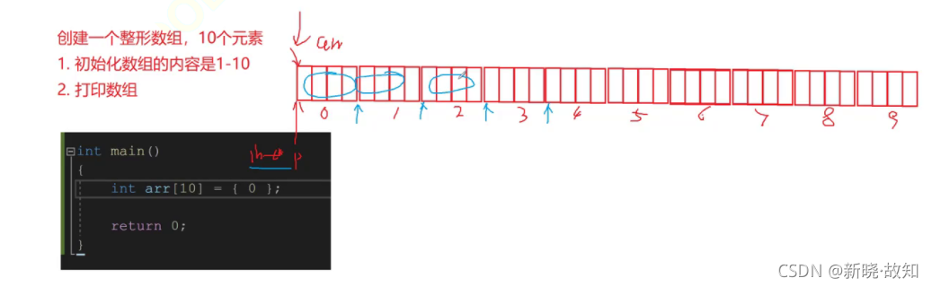 int arr[10] = {1,2,3,4,5,6,7,8,9,0}; int *p = arr; p存放的是数组首元素的地址