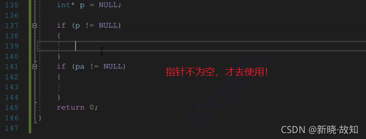 #include <stdio.h> int main() { int *p = NULL; //.... int a = 10; p = &a; if(p != NULL) { *p = 20; } return 0; }
