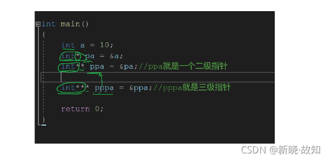 **ppa = 30; //等价于*pa = 30; //等价于a = 30;