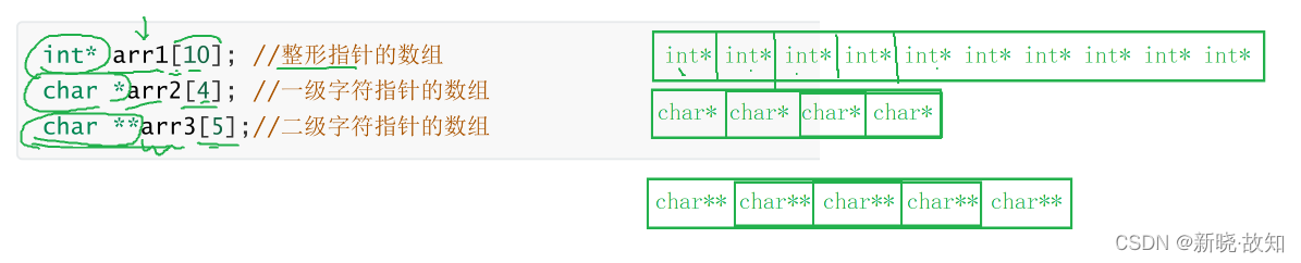 在《指针》章节我们也学了指针数组,指针数组是一个存放指针的数组。