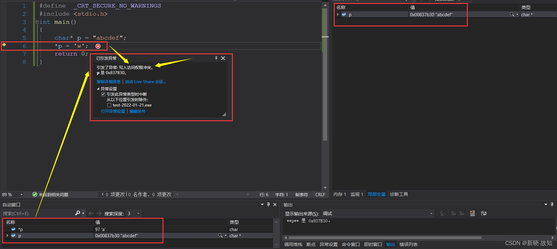 编辑 结论:以上代码逻辑错误!此处无法对p进行更改,因为abcdef是存储在内存的只读数据区!