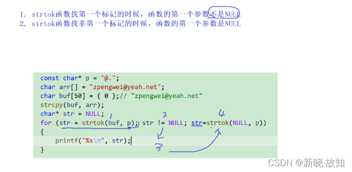 ♦strtok函数找到str中的下一个标记,并将其用 \0 结尾,返回一个指向这个标记的指针。(注: strtok函数会改变被操作的字符串,所以在使用strtok函数切分的字符串一般都是临时拷贝的内容 并且可修改。)