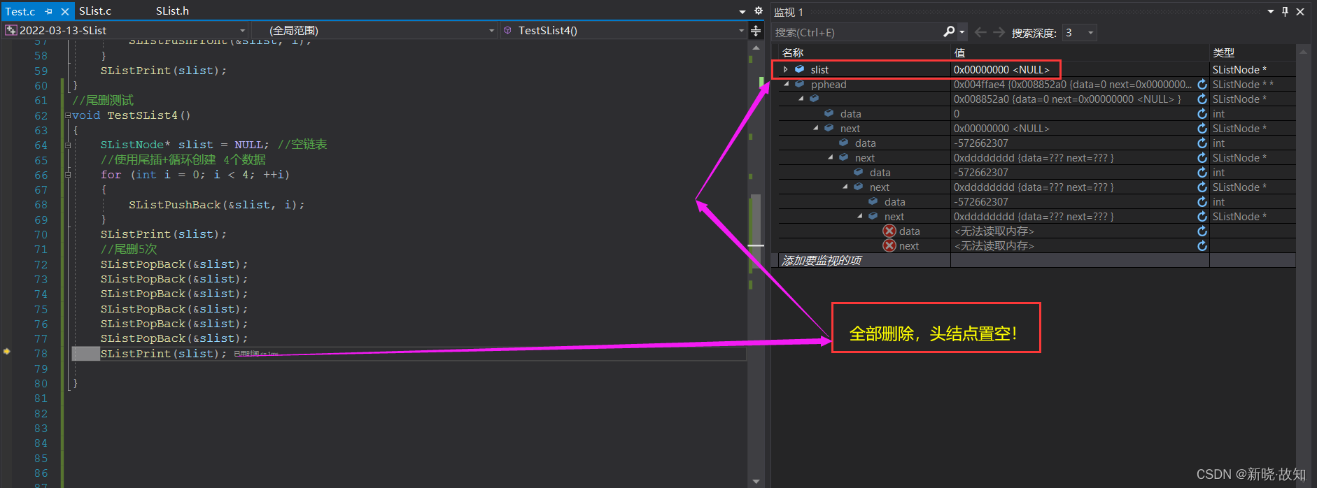 #pragma once #include <stdio.h> #include <string.h> #include <stdlib.h> #include <assert.h> typedef int SLTDataType; //以后可以更改int为char或者double等 typedef struct SListNode { SLTDataType data; // val struct SListNode* next; // 存储下一个结点的地址 }SListNode, SLN; //头结点指针 void SListPrint(SListNode* phead); //尾插 void SListPushBack(SListNode** pphead, SLTDataType x); //头插 void SListPushFront(SListNode** pphead, SLTDataType x);