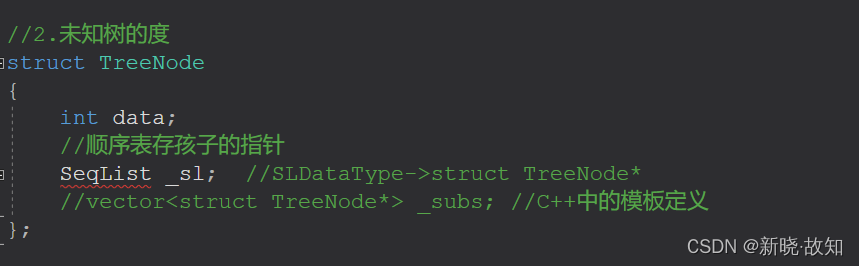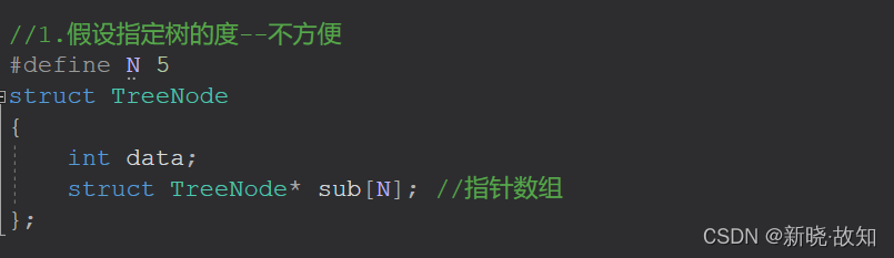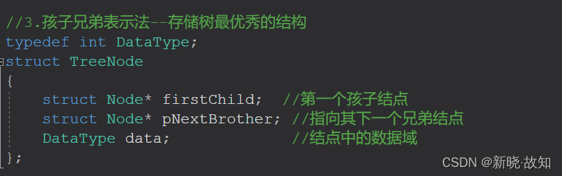 #include<stdio.h> ////1.假设指定树的度--不方便 //#define N 5 //struct TreeNode //{ // int data; // struct TreeNode* sub[N]; //指针数组 //}; ////2.未知树的度 //struct TreeNode //{ // int data; // //顺序表存孩子的指针 // SeqList _sl; //SLDataType->struct TreeNode* // //vector<struct TreeNode*> _subs; //C++中的模板定义 //}; //3.孩子兄弟表示法--存储树最优秀的结构 typedef int DataType; struct TreeNode { struct Node* firstChild; //第一个孩子结点 struct Node* pNextBrother; //指向其下一个兄弟结点 DataType data; //结点中的数据域 }; int main { return 0; }