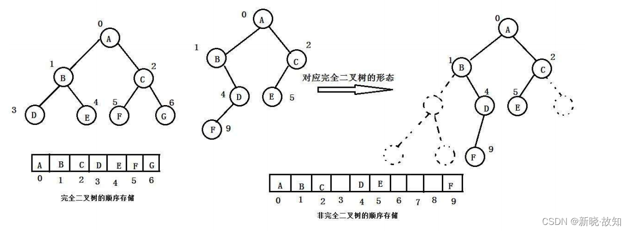 顺序结构存储就是使用数组来存储,一般使用数组只适合表示完全二叉树,因为不是完全二叉树会有空间的浪费。而现实中使用中只有堆才会使用数组来存储,关于堆我们后面的章节会专门讲解。二叉树顺序存储在物理上是一个数组,在逻辑上是一颗二叉树。 编辑