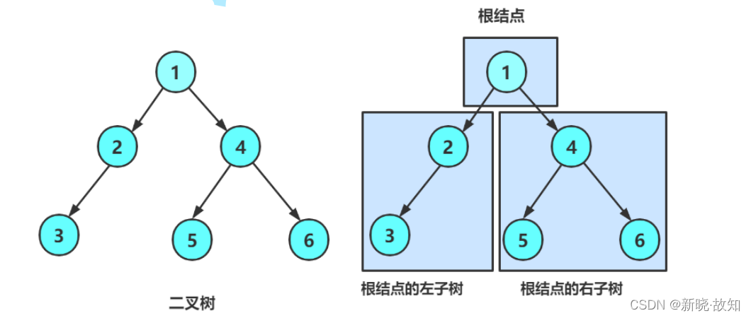 2. 由一个根节点加上两棵别称为左子树和右子树的二叉树组成