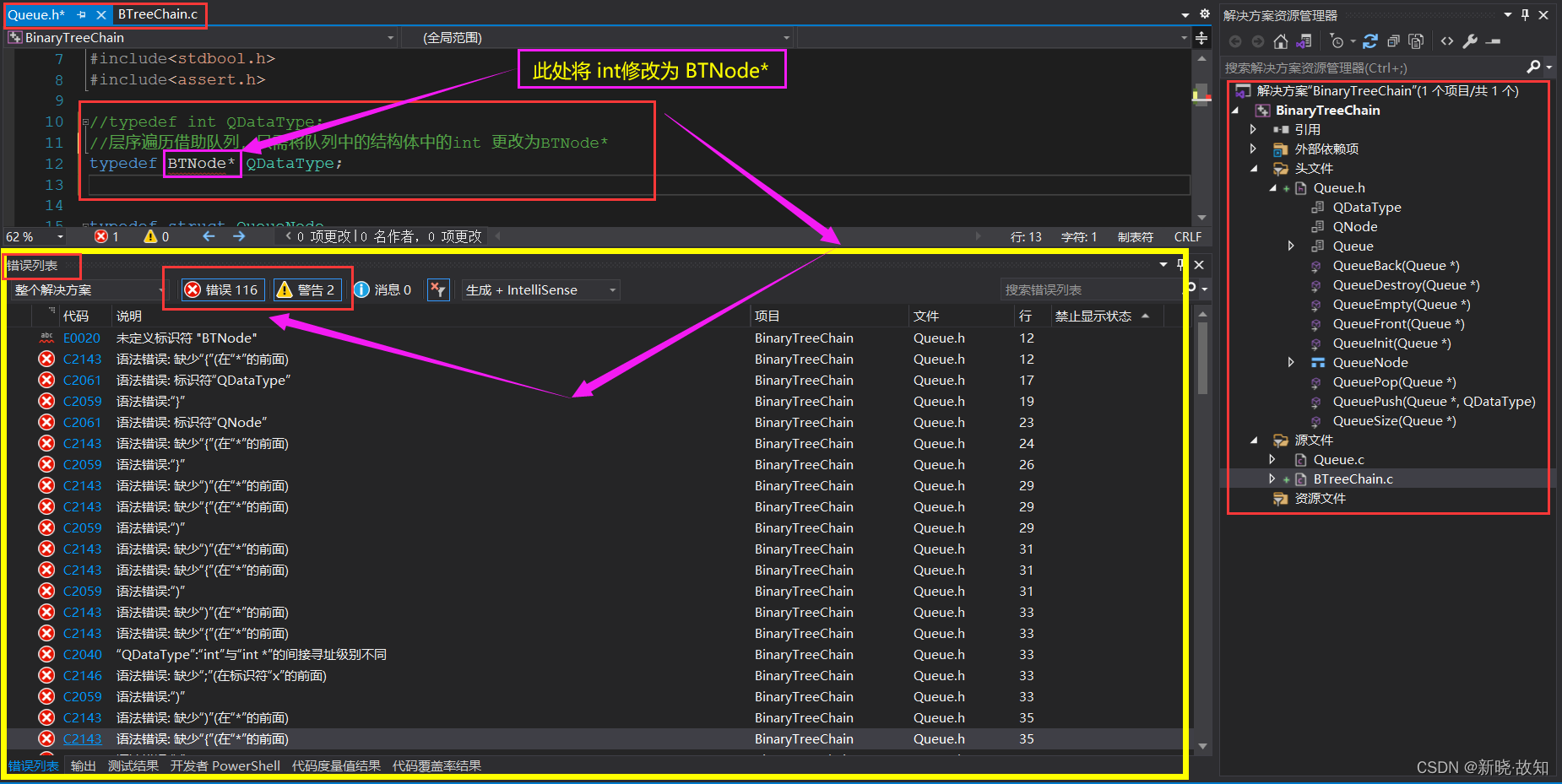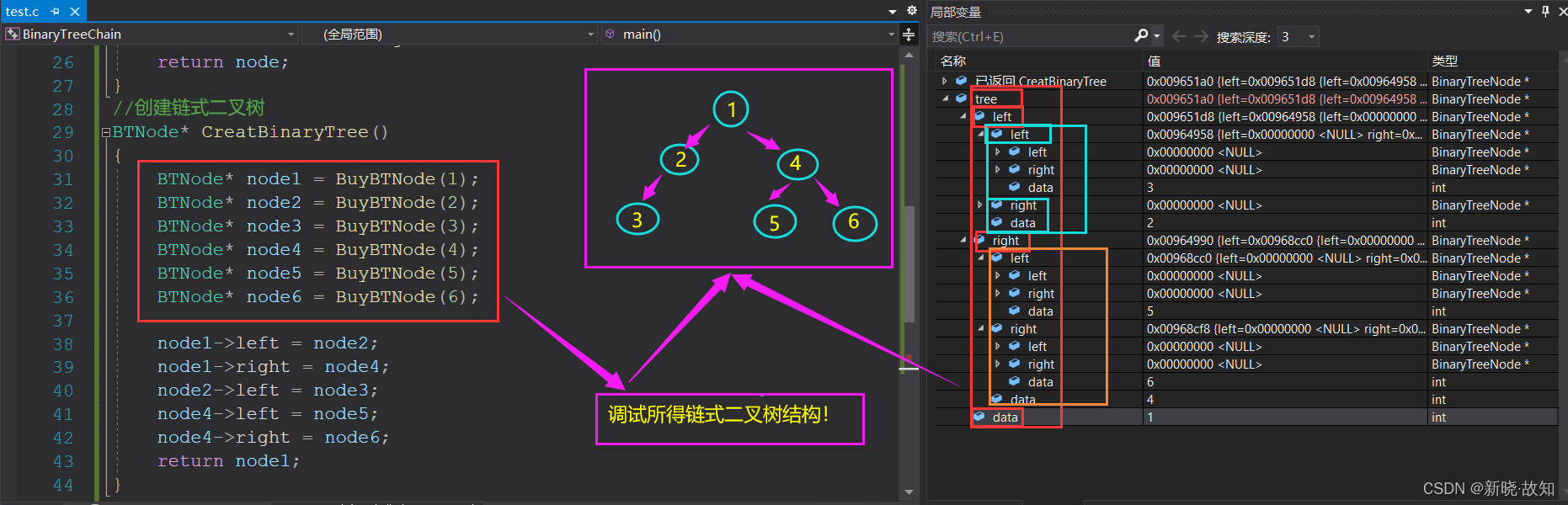 (1)定义二叉树链式结构