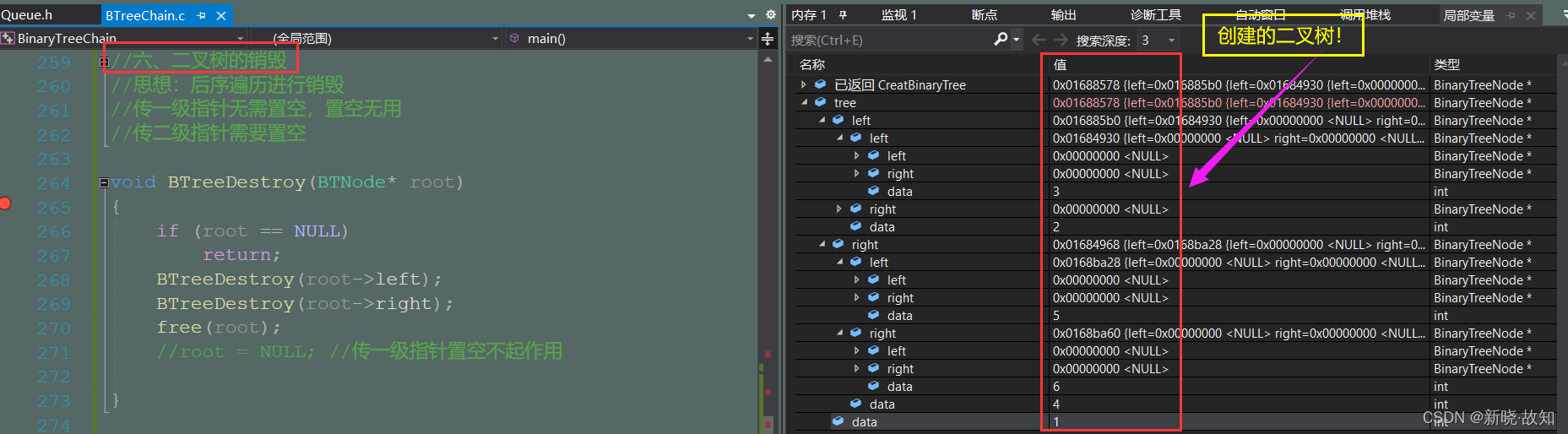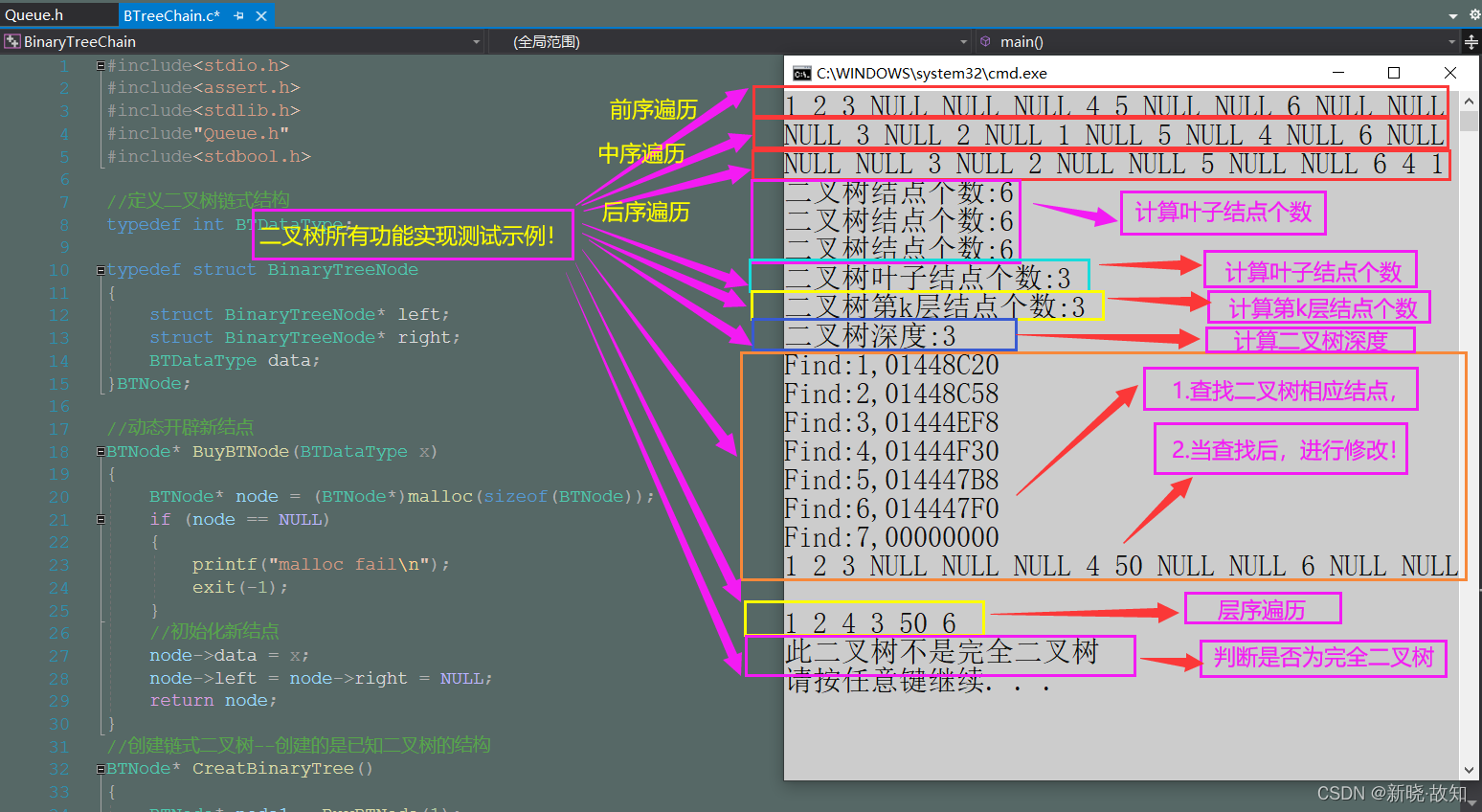 三、二叉树(链式)实现完整源码