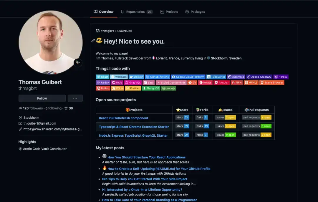 - 技术大佬型🤖:展示自己的技术栈、开源项目、最近文章