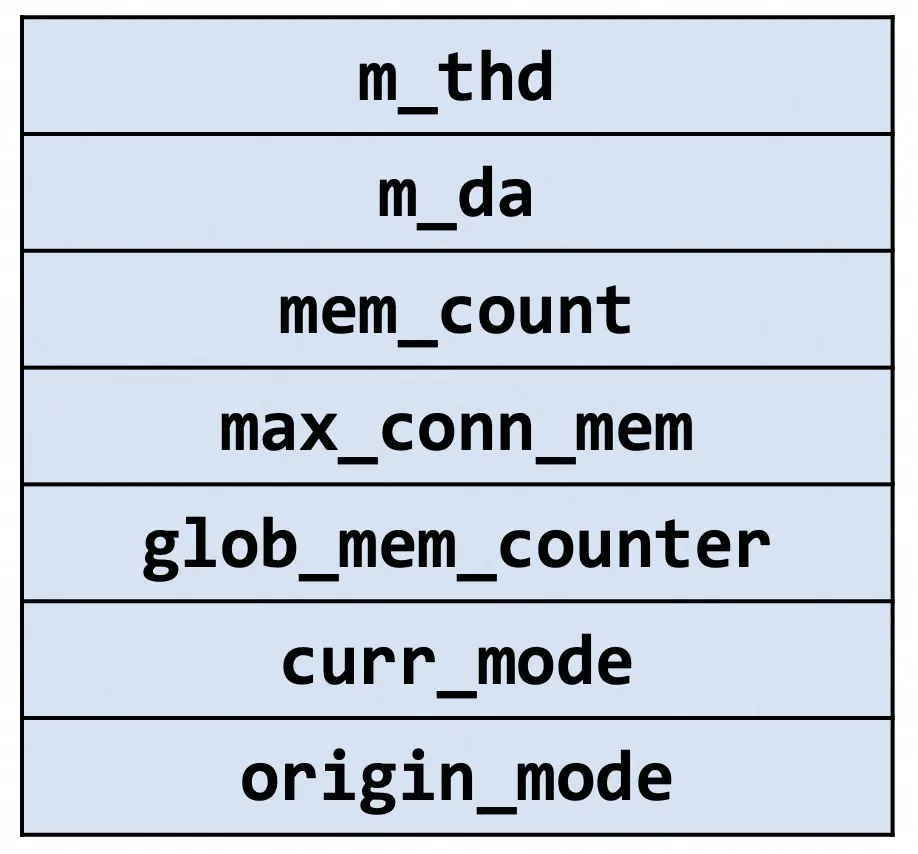 内存统计和限制操作依赖于PFS_thread,计数器数据的更新首先通过该对象传递。