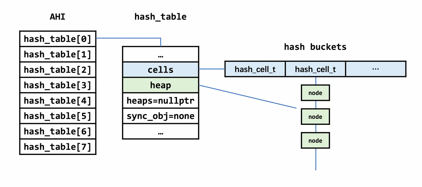 该结构结构是一个非空的内存块链表,由一个个的大小不一的mem_block_t线性连接。重点关注free_block和buf_block,某种程度上来说,这两个指针定义了实际数据存放的位置。根据申请类型的不同,数据存放在两者之一指向的内存。利用mem_heap_t进行内存分配的方式可以将多次的内存分配合并为单次进行,之后的内存请求就可以在InnoDB引擎内部进行,从而减小了频繁调用函数malloc和free带来的时间与性能的开销。