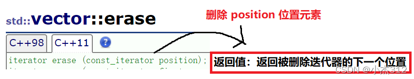 - 再看 insert + erase 都存在一个 iterator作为返回值,为啥,跟新旧的迭代器,防止迭代器失效。。。 向如下的代码为啥要 接收一下 erase 之后的返回值也就可以理解了,防止使用失效的迭代器