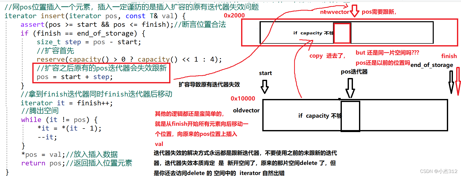 所以 删除,插入扩容,都可能导致迭代器失效,插入失效是因为扩容,删除失效是因为它已经别干掉了,很可能是delete 或者其他操作