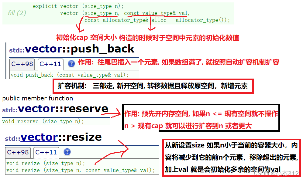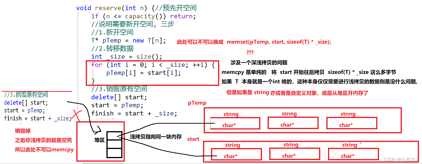 插入元素时候的扩容机制: 如果是需要扩容,采取的一般是二倍扩容的方式进行扩容的,扩容分为三部,新开空间,转移数据,销毁原有空间... (记住转移数据调用深拷贝,不可以memcpy) why?
