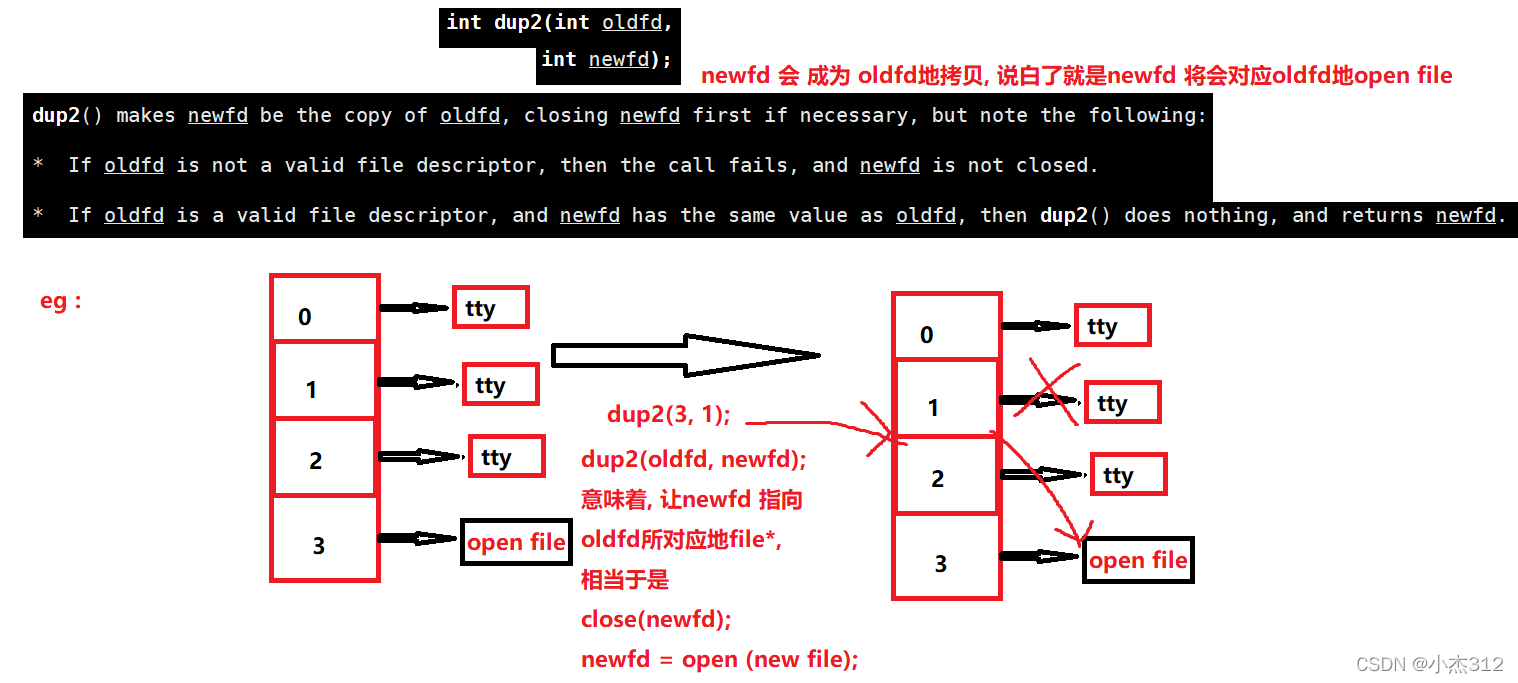 - dup2(oldfd, newfd); 函数功能:使 newfd 指向 oldfd 所对应打开地文件