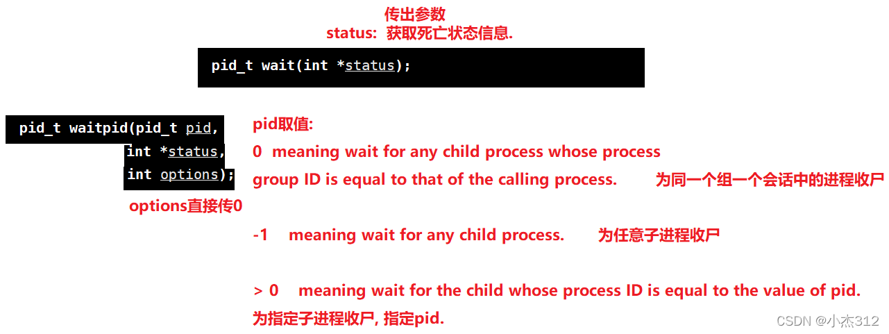 传出参数status, 作用就是传出获取死亡状态信息. 其实就是获取退出码.
