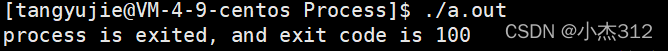 #include <stdio.h> #include <unistd.h> #include <sys/types.h> #include <sys/wait.h> #include <fcntl.h> #include <stdlib.h> int main() { pid_t pid; pid = fork();//创建copy进程 if (pid == 0) { //son process sleep(30);//子进程先进行休眠, 等待被kill exit(100);//正常退出, 死亡状态码100 } else { int status;//获取死亡状态信息 if (-1 == wait(&status)) { perror("wait"); return -2; } if (WIFEXITED(status)) { //说明是正常中断的 printf("process is exited, and exit code is %d\n", WEXITSTATUS(status)); } else if (WIFSIGNALED(status)) { //说明是信号中断掉的 printf("process is signal, and signal code is %d\n", WTERMSIG(status)); } else { printf("进程终止原因未知\n"); } } return 0; }