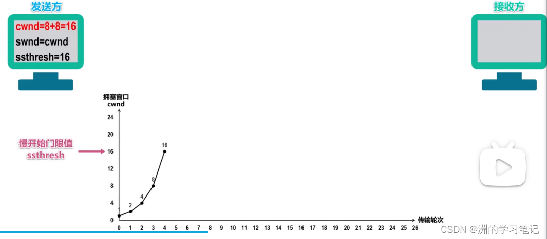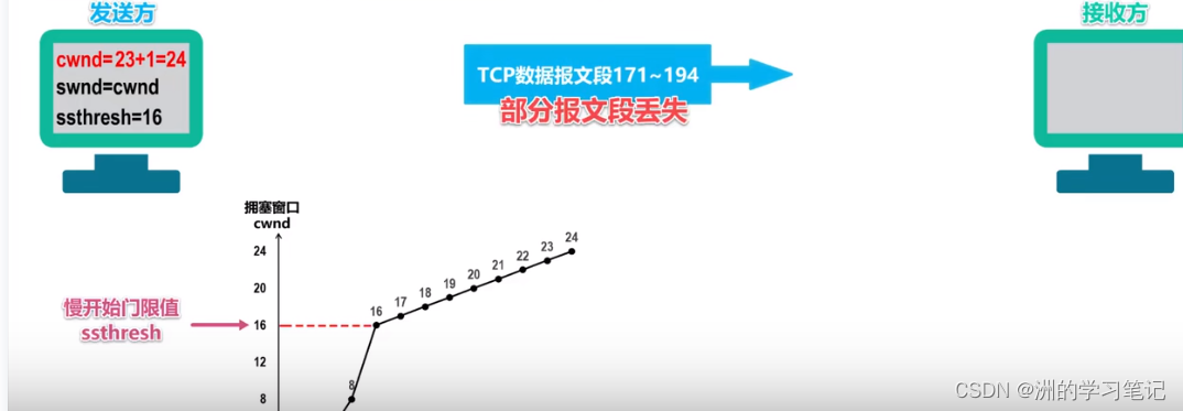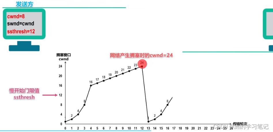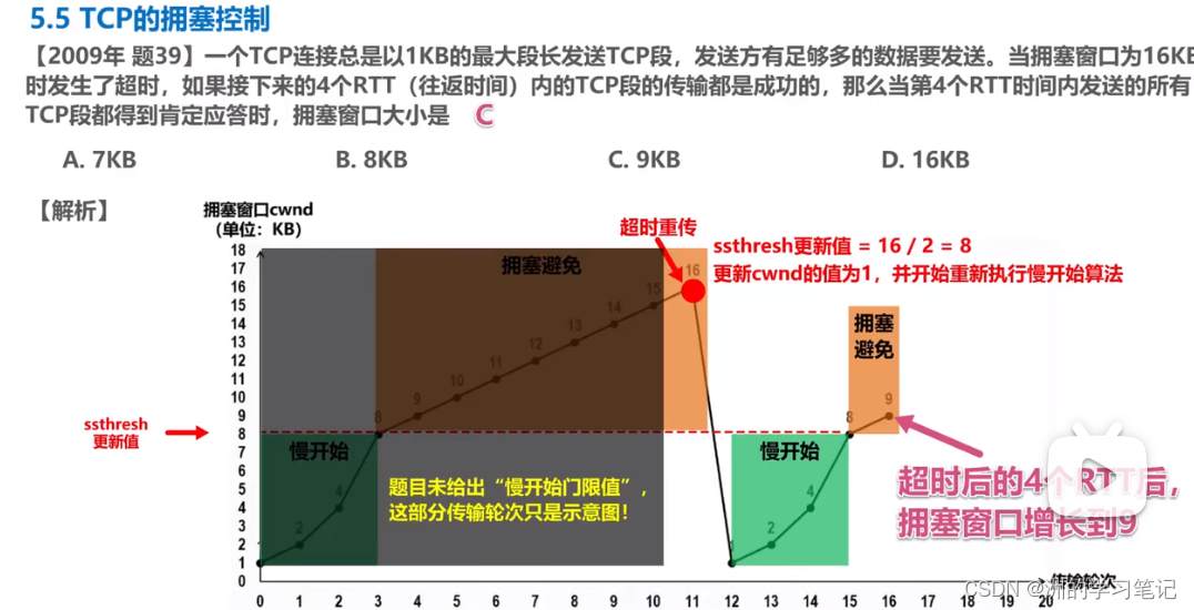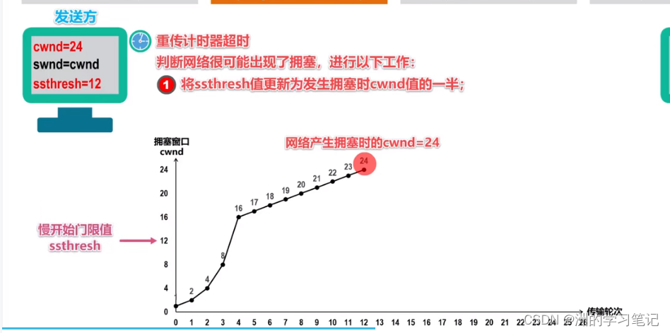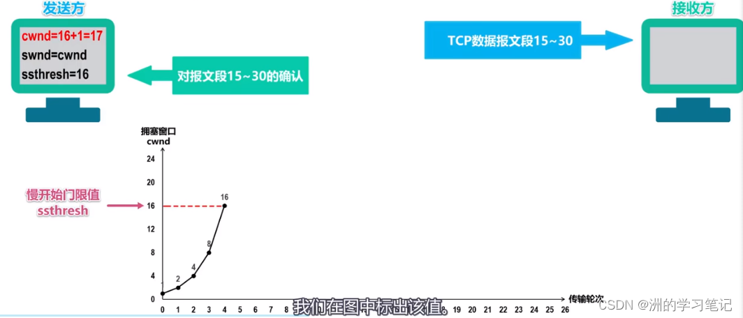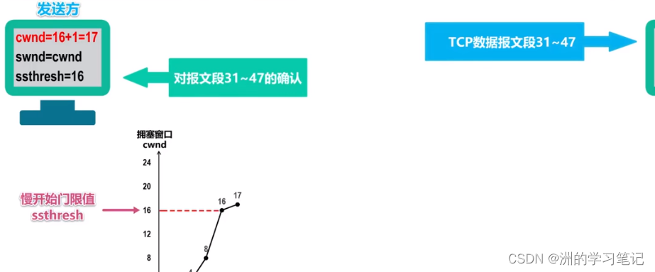 这个时候已经是慢开始门限值了,所以这个时候采用拥塞避免算法。