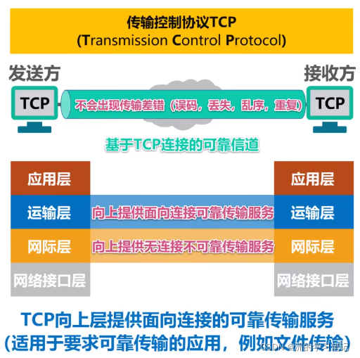 可以理解为,基于tcp的话,不会出现传输错误(误码、丢失、乱序、重复),因为是连接的是可靠的信道。