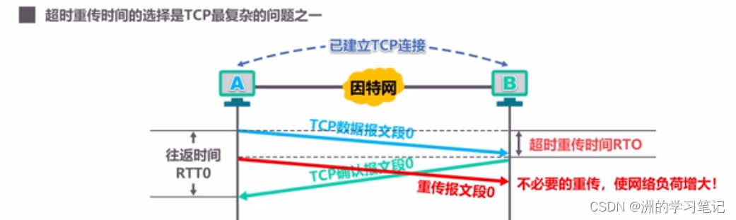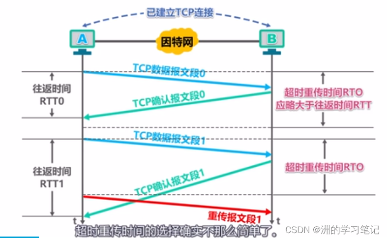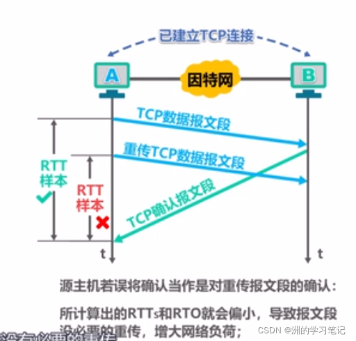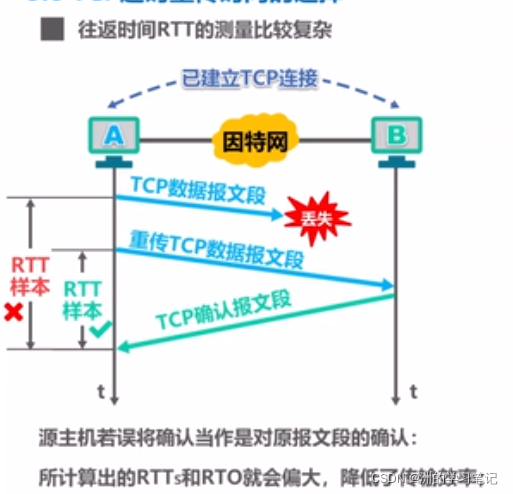 TCP下层是复杂的物联网通信,可能每个IP数据报的转发路由还不同,会造成数据报文段的RTT是不一样的。