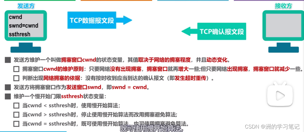慢开始:一开始向网络注入的报文段比较少,并不是指拥塞窗口cwnd增长速度慢。