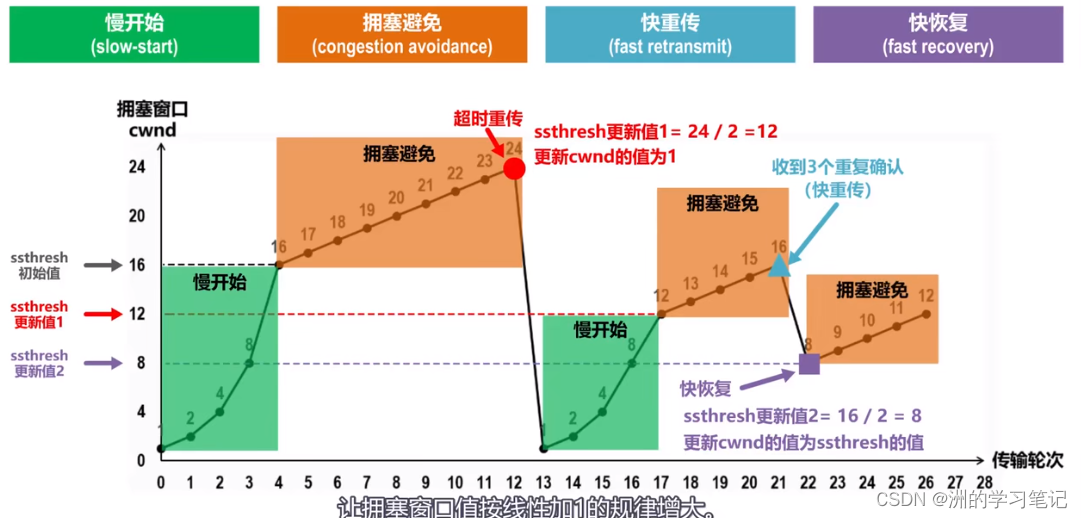 拥塞避免并非能够完全避免拥塞,而是在拥塞避免阶段将拥塞窗口控制为线性增长,使得网络比较不容易出现拥塞。