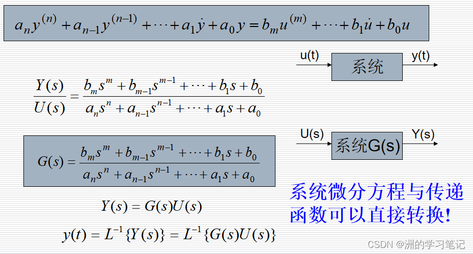 在零初始条件下,线性定常系统(环节)输出的拉氏变换与输入的拉氏变换之比,称为该系统(环节)的传递函数。