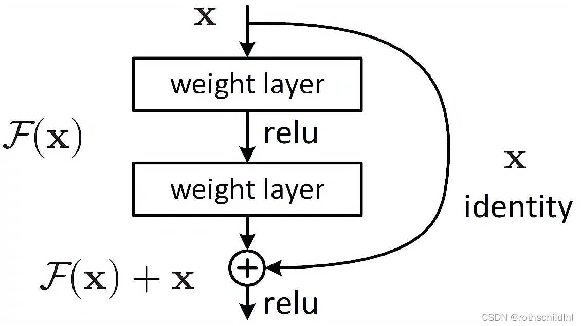 深度残差网络(ResNet)除最开始的卷积池化和最后池化的全连接之外,网络中有很多结构相似的单元,这些重复的单元的共同点就是有个跨层直连的shortcut,同时将这些单元称作Residual Block。Residual Block的构造图如下(图中 x identity 标注的曲线表示 shortcut):