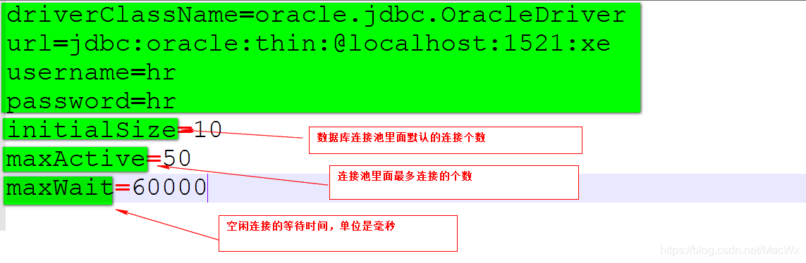 DriverClassName=oracle.jdbc.OracleDriver url=jdbc:oracle:thin:@localhost:1521:xe username=hr password=mcw