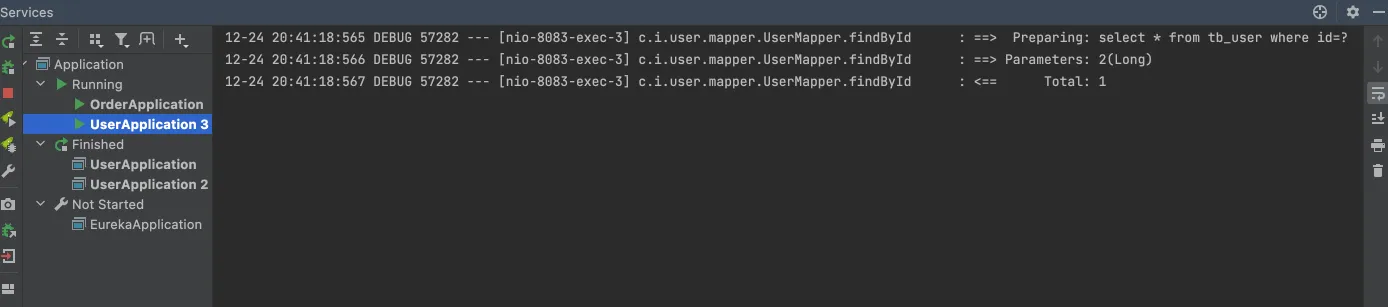 - 复制一个新的userApplicatio3启动类,设置其启动端口:-Dserver.port=8083