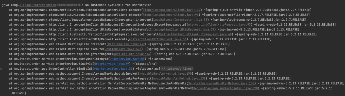 我们修改user-service的配置文件,增加namespace,并重启服务再次访问会发现服务恢复正常