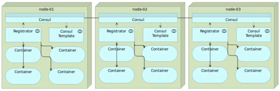 我们用Registrator来监控每个Server的状态。当有新的Server启动的时候,Registrator会把它注册到Consul这个注册中心上。