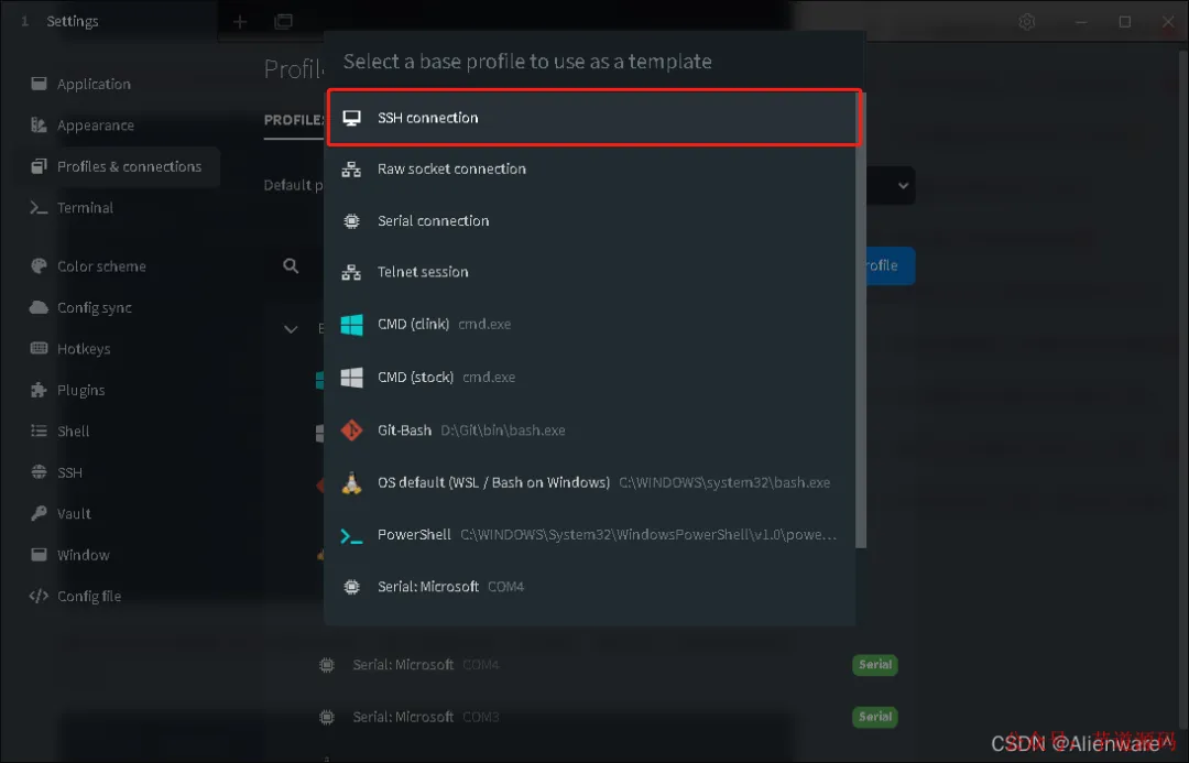 然后选择 ssh connection。