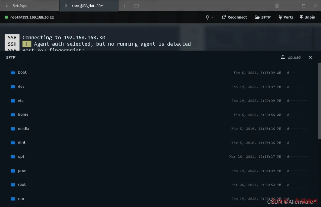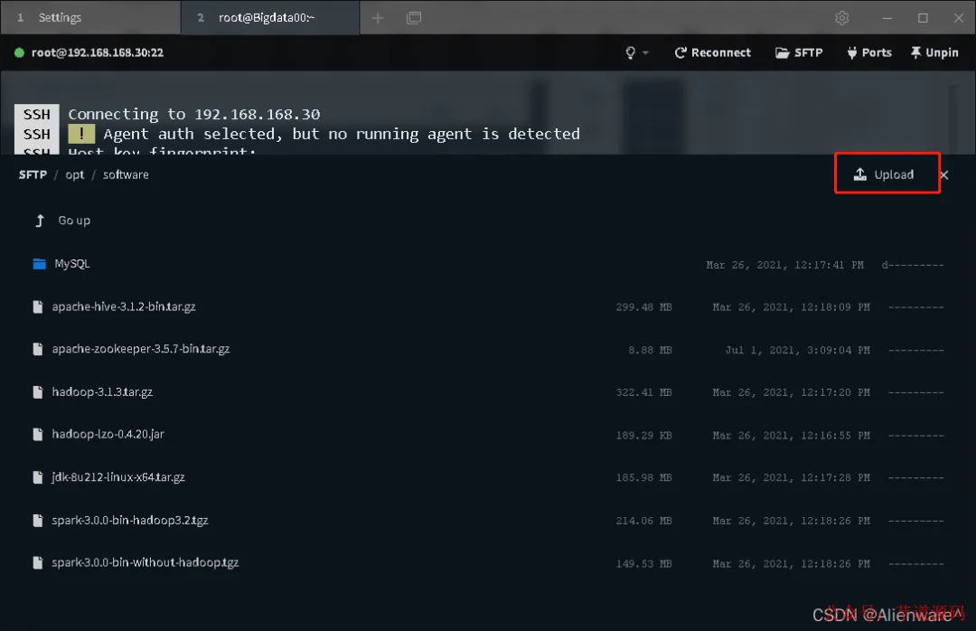 前面也介绍过,这款终端工具是自带 SFTP 功能的。要使用的话,直接点击下图中的 SFTP 图标就行。