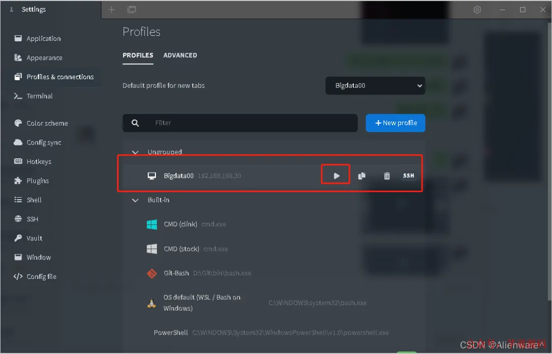 所以,要想新建一个连接服务器的终端,要点击「Settings」,进入到配置页面。