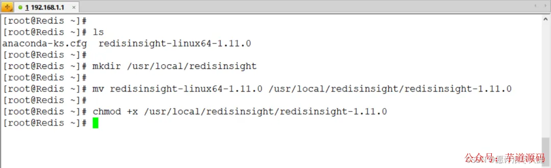 [root@Redis ~]# ls anaconda-ks.cfg redisinsight-linux64-1.11.0 [root@Redis ~]# mkdir /usr/local/redisinsight [root@Redis ~]# mv redisinsight-linux64-1.11.0 /usr/local/redisinsight/redisinsight-1.11.0 [root@Redis ~]# chmod +x /usr/local/redisinsight/redisinsight-1.11.0