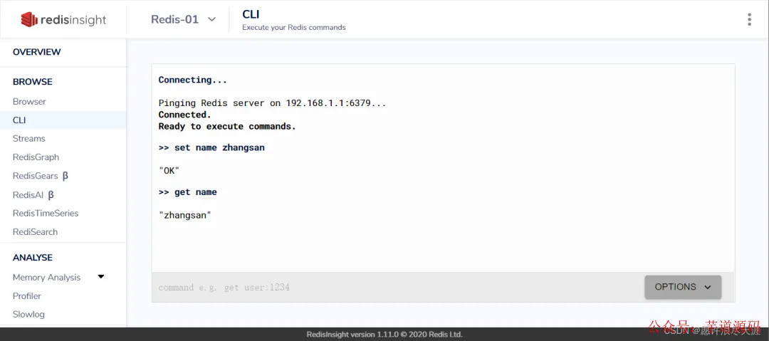 3)同时 RedisInsight 还可以在界面上进行操作: