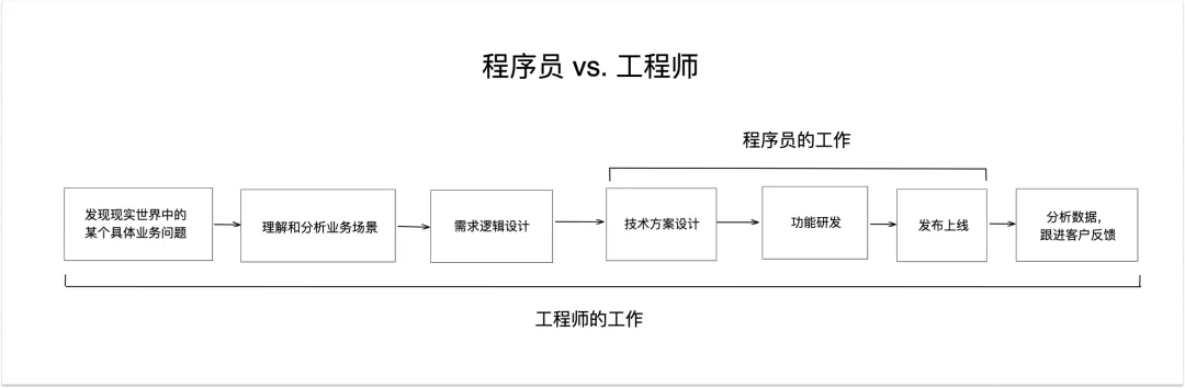 这件事情发生之后,我开始重新思考我做这份工作的价值,然后我开始逐渐意识到了「程序员和工程师是有区别的」: