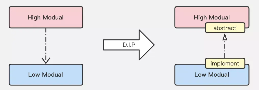 Robert C.Martin是《Clean Code》《Code Architecture》两本经典书籍的作者,1996年他在C++ Report中发表了一篇名为 The Dependency Inversion Principle 的文章。他认为模块间的依赖应该是有序的,高层不应该依赖低层,低层应该依赖高层,抽象不应该依赖细节,细节应该依赖抽象。