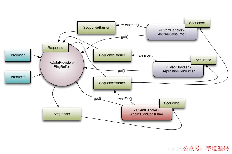 Sequencer 是 Disruptor 的真正核心。此接口有两个实现类 SingleProducerSequencer、MultiProducerSequencer ,它们定义在生产者和消费者之间快速、正确地传递数据的并发算法。