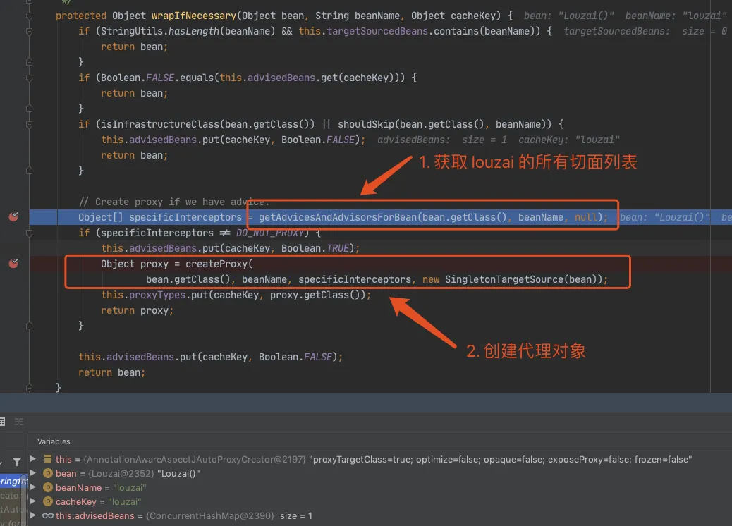 再回到该小节开头,我们拿到 louzai 的切面信息,去创建 AOP 代理对象。