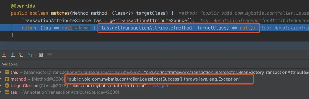 这里只会匹配到 Louzai.testSuccess() 方法,我们直接进入匹配逻辑。