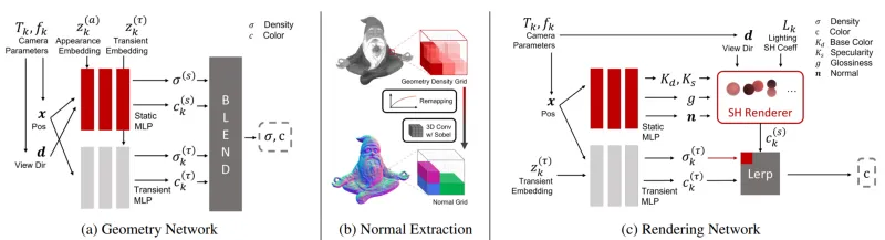 除了拍手办以外,游戏从业者还可以利用神经渲染技术,简单地拍摄一些物体的照片,合成3D模型,然后就可以制作出一个完美的游戏场景。但模型如果只是看起来准确,形状更贴合照片,还远远不够,因为一旦把合成后的物体放入到新场景中,因为光影的不同,合成模型在新环境中显得格格不入,所以一下子就会「露馅」。针对这个问题,来自SnapChat和南加州大学的研究人员提出了一个新模型NeROIC,能够解决从图像中创建虚拟物体所带来的照明和真实性的问题。论文地址:https://arxiv.org/pdf/2201.02533.pdf新模型建立在神经辐射场(neural radiance field)的基础上,神经辐射场广泛用于重构中,例如NeRF等模型。但神经辐射场需要在相同的理想条件下才能够完美建模,但这并不符合真实场景的需求。研究人员从NeRF模型出发来改进。NeRF神经网络的训练输入为一张图片,用来推测每个像素的颜色、不透明度和辐射度,并猜测物体中没有出现在二维图像中的小部分的缺失像素。但这种方法对大面积的缺失部分或不同的照明条件下没有作用,因为它只能从输入的图像中进行插值。所以新的模型需要更多的信息来推断,并对某个地方应该出现的东西或这些像素在这种光照下应该是怎样的做出假设等。许多方法都是在NeRF的基础上解决这个问题,但新模型总是需要用户提供更多的输入条件,这也并不符合实际场景的需求,并且在很多情况下用户也并不清除这些数据,特别是当其他人想建立一个好的数据集来训练模型时,就更加困难了。总的来说, 之前的NeRF类模型并没有真正理解物体,也没有理解物体所处的环境。所以真正要解决的事又回到照明问题上了。