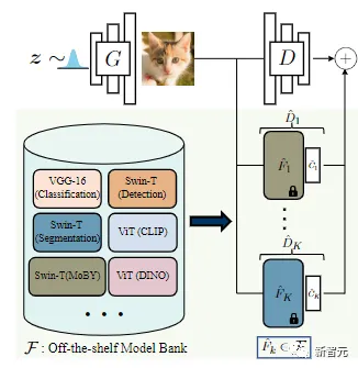 为了平衡判别器和生成器的能力,研究人员提出将一组不同的预训练模型的表征集合起来作为判别器。