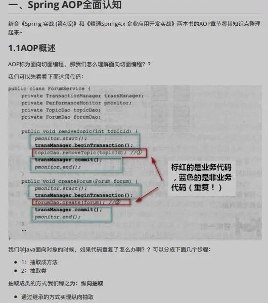 由于Spring家族的东西很多,一次性写完也不太现实。所以这一次先更新Spring【最核心】的知识点:AOP和IOC