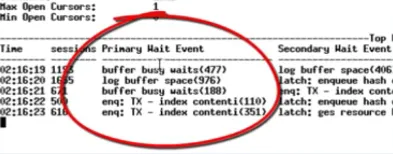 各种buffer busy waits,数据库CPU在95%左右(这张图里没截到CPU)