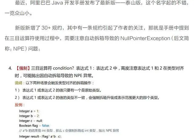 《新版 Java 开发手册》提到的三目运算符的空指针问题到底是个怎么回事?